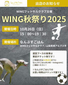 10月26日(日)開催の「WING秋祭り2025」に出店します🎉